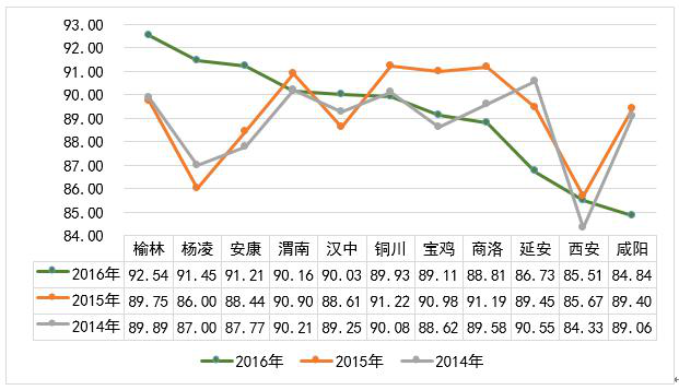 Ø 近三年陜西省各地市公眾氣象服務(wù)滿(mǎn)意度對(duì)比分析