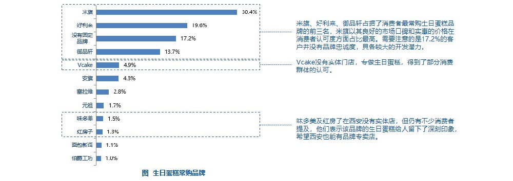 研究發(fā)現(xiàn)1:米旗/好利來(lái)/御品軒等生日蛋糕受市場(chǎng)認(rèn)可度高