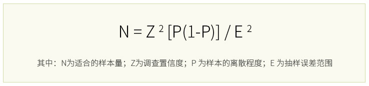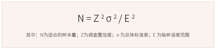 樣本量確定公式:在充分考慮所有統(tǒng)計(jì)因素基礎(chǔ)上,蘭德趨勢通常采用的簡單隨機(jī)抽樣(特別是估計(jì)平均值時(shí))的公式為: